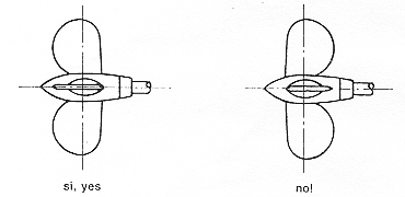 8.) Zinkanode aufschrauben 9.) Endkontrolle: beidseitige Drehung der Flügel muß leichtgängig sein - am Anschlag sollten die Flügel die gewünschte Gradneigung erreichen. An den Nabenlagern der Flügel und im Spalt des Nabenstückes zu den Nabenschalen sollte leicht Schmiermittel austreten. In Segelstellung müssen die Flügel exakt mit der Nabe fluchten. |